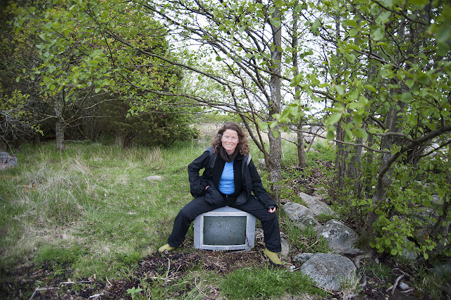 Sönder udde på Enö hade sol och väl runt spetsen så blev det rena rama glasspaddlingen med strömmen i ryggen och sol på näsan. Anne-Grethe hittade märkliga gubbar bakom träd i folks trädgårdar och livet var rätt gött.